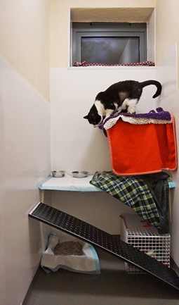 • We have cattery style accommodation in our radioiodine ward with webcams, radios and even a television in the ward area to make your cat’s stay as comfortable as possible